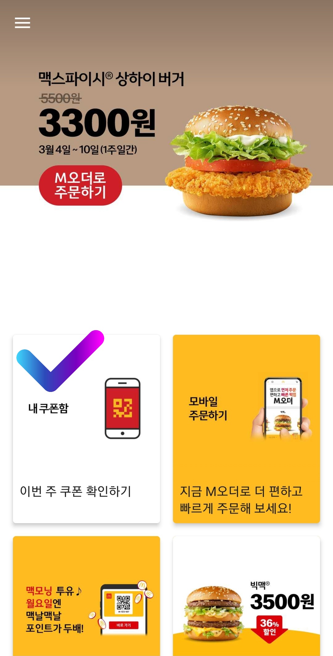 3. 맥도날드 어플 메인 화면에서 내쿠폰함 선택