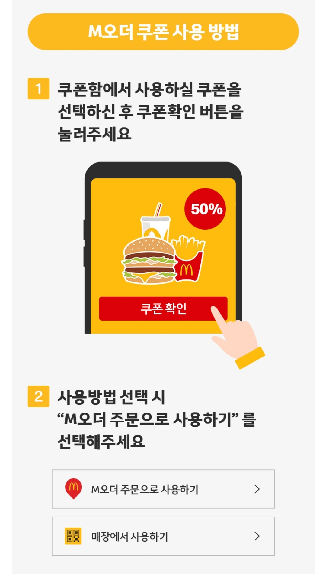 아래는 맥도날드 어플에 있는 쿠폰 사용방법이니 참고하세요.