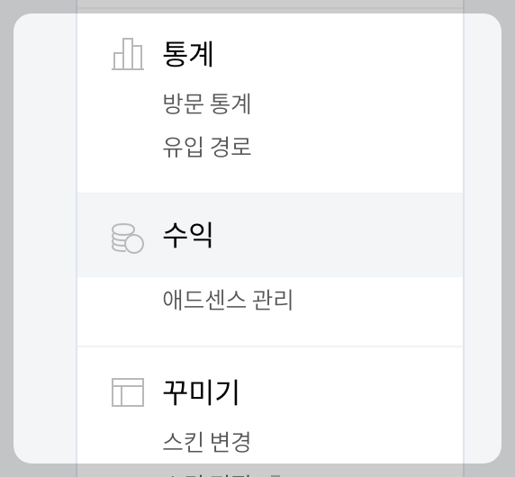 - 수익-애드센스 관리 메뉴 선택