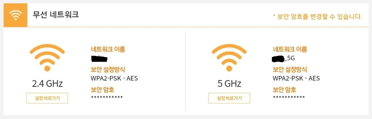 무선 네트워크 설정중에서 5GHz 설정 바로가기 선택