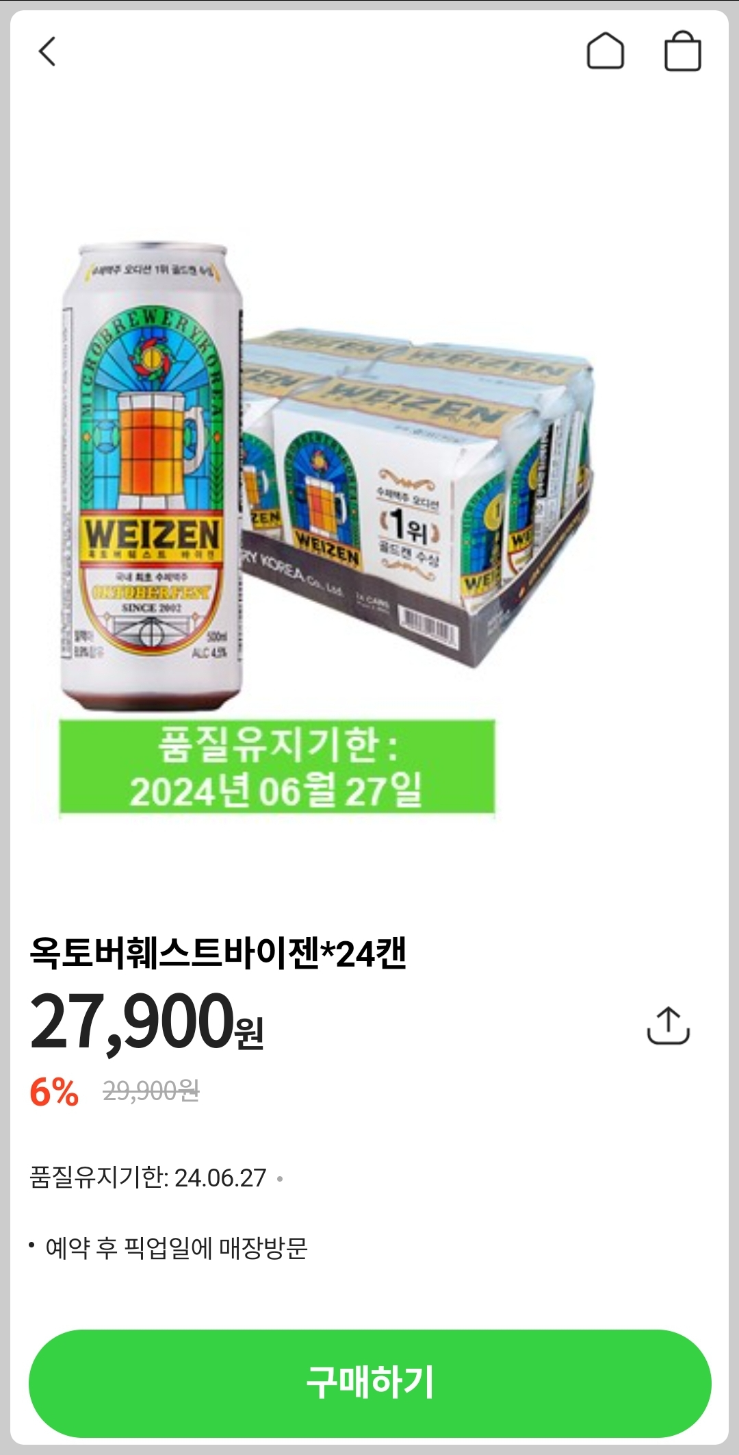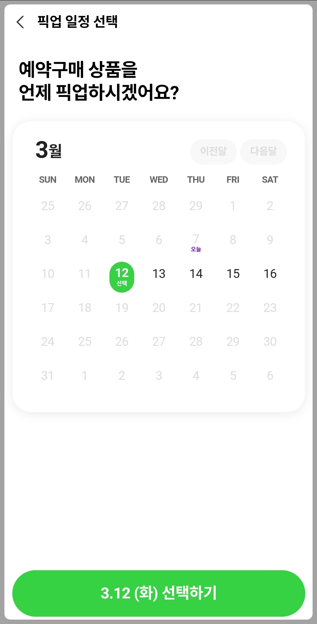 5. 구매하기 선택 - 원하는 점포 - 원하는 픽업 날짜 선택